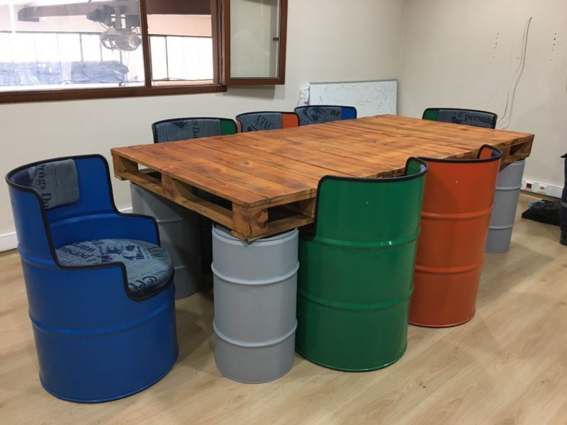 Если ремонт дырки в железной бочке оказался неудачным, не стоит отчаиваться. Емкость можно переработать в различные предметы интерьера – мебель, умывальники, клумбы, мангалы, бетономешалки и т.д.